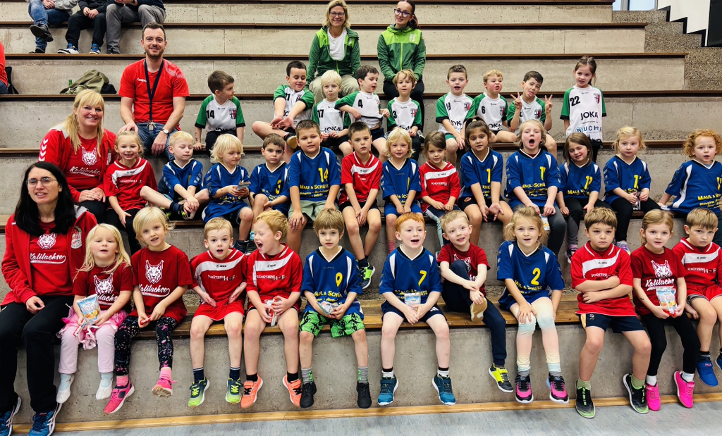 Aber auch unsere Kleinsten, die „Minis“, nahmen am Turnier teil und hatten sich die Minis von FT Fulda eingeladen, um schon einmal ein bisschen Handball zu spielen. Man sah die leuchtenden Augen der Kids (und auch der Familien), als die Kleinsten im Trikot aufs Feld rannten und es den Großen nachtaten.